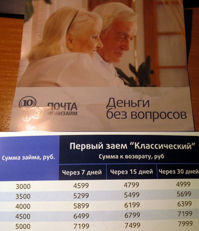 Инновационный потенциал продемонстрировала Почта России, запустив программу кредитования граждан на небольшие суммы – публика дивится: заём в 5000 рублей на неделю даётся под… 2800% годовых – на этом фоне свежая идея ФАС ограничить проценты по кредитам в стране выглядит форменным издевательством.